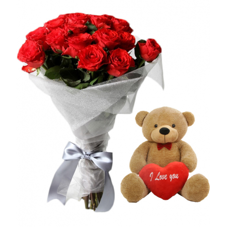 Combo gồm:Bó 20 cành hồng*Một gấu bông nhỏ..
